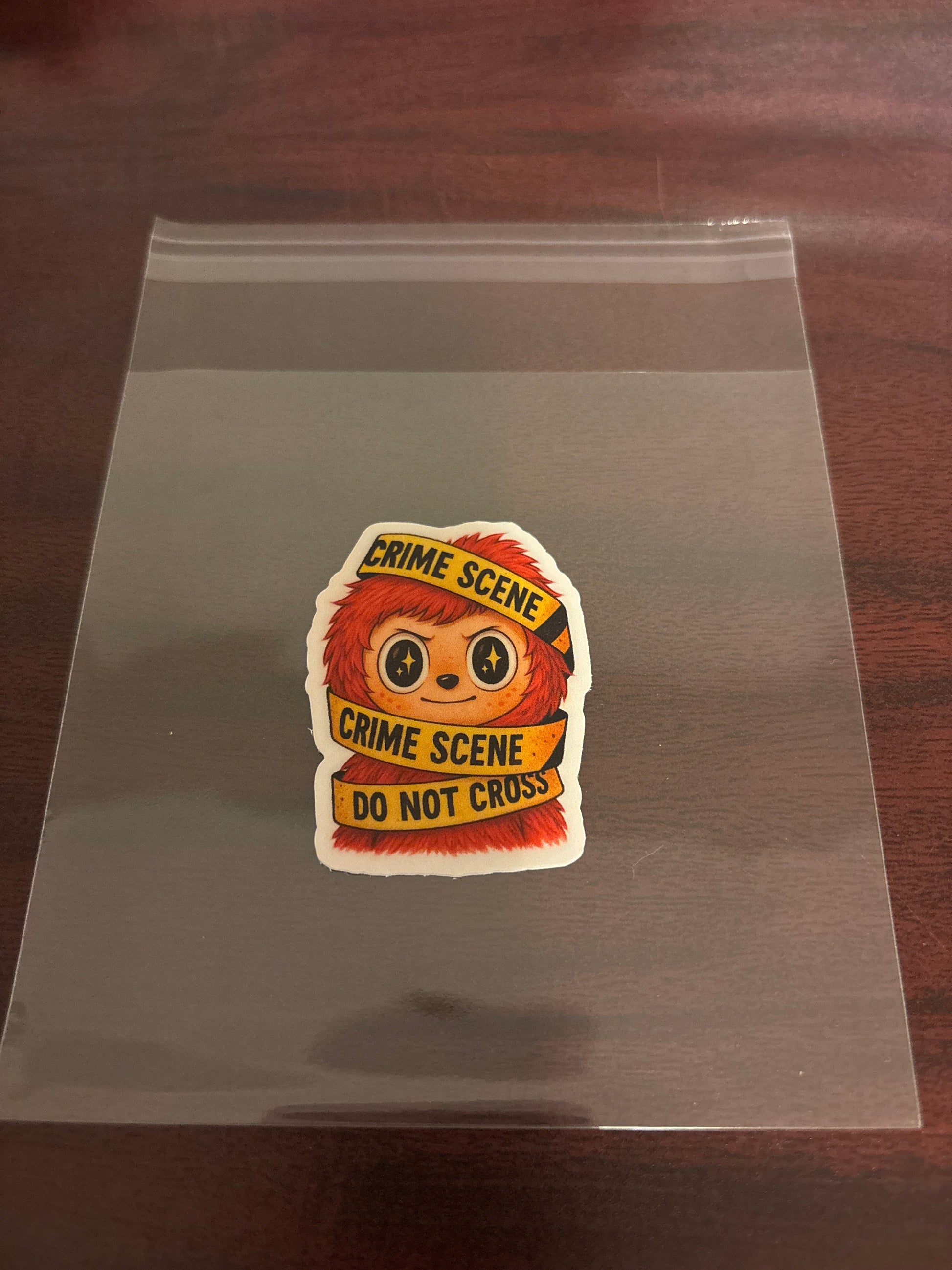 This mischievous labubu is wrapped in bright yellow “Crime Scene” tape. Its soft red fur and eerie cute vibe make it the perfect addition for collectors who love quirky, spooky, or Halloween themed art🤯