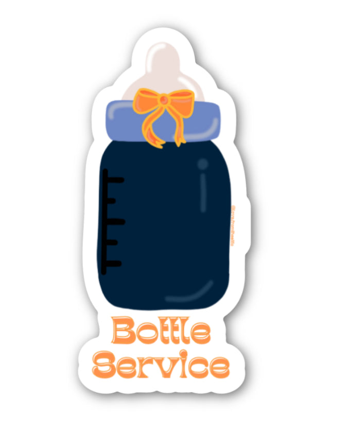 A playful twist on the phrase “bottle service”. Perfect for parents, nurses, or anyone who wants to add a touch of humor to their water bottles, laptops, or notebooks