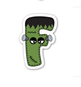 Spooky but make it cute! This Frankenstein inspired “F” is perfect for adding a little Halloween magic to your laptop, water bottle, reading journal, kindle.. or anything you might think of! 💚