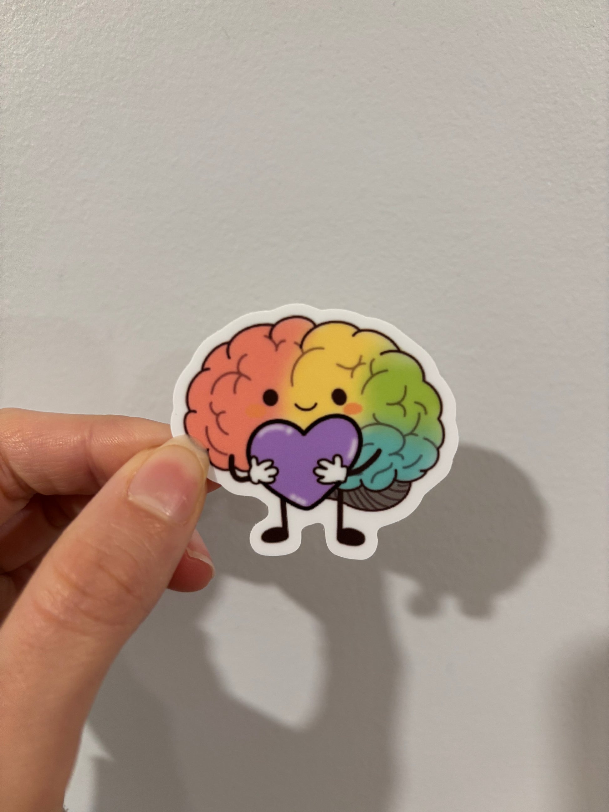 Show your brain some love! Stick it on your laptop, water bottle, journal, or wherever you need a reminder that brains and hearts are made for loving