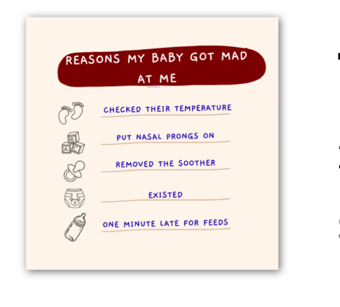 A funny, relatable sticker caregivers everywhere, playful reasons why babies throw their tiniest tantrums. Perfect for water bottles, notebooks, or your work badge for a dose of humor during your shift